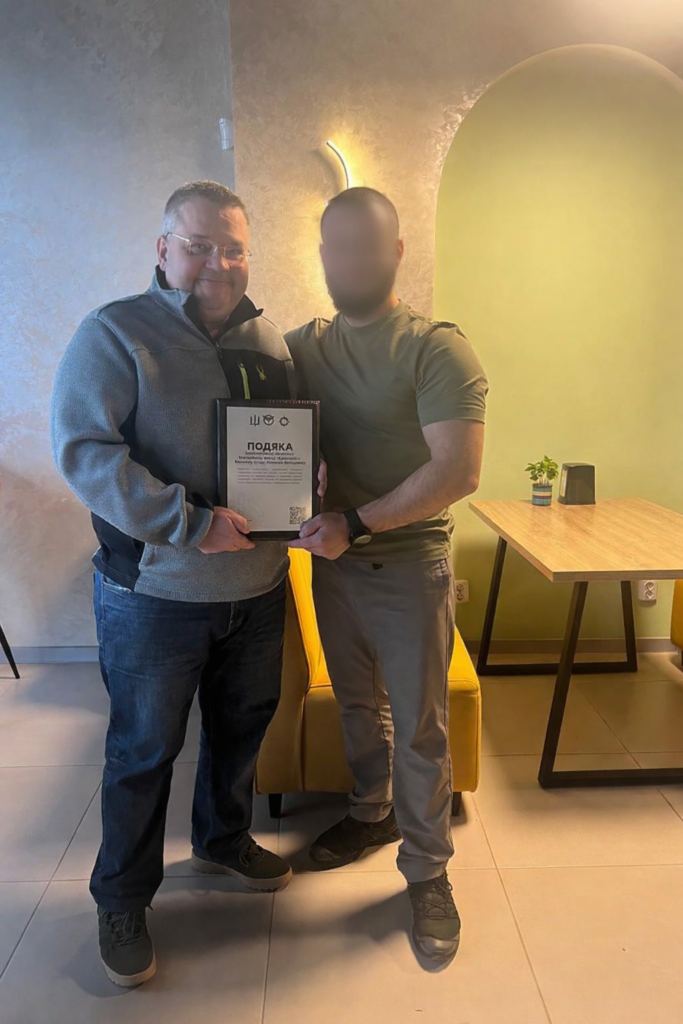 Подяку особисто вручив командир спецпідрозділу ГУР як визнання вагомого внеску фонду у підтримку підрозділу, системної допомоги, принципової громадянської позиції та відданості спільній справі боротьби за свободу і незалежність України.